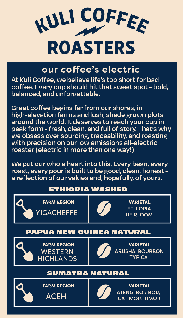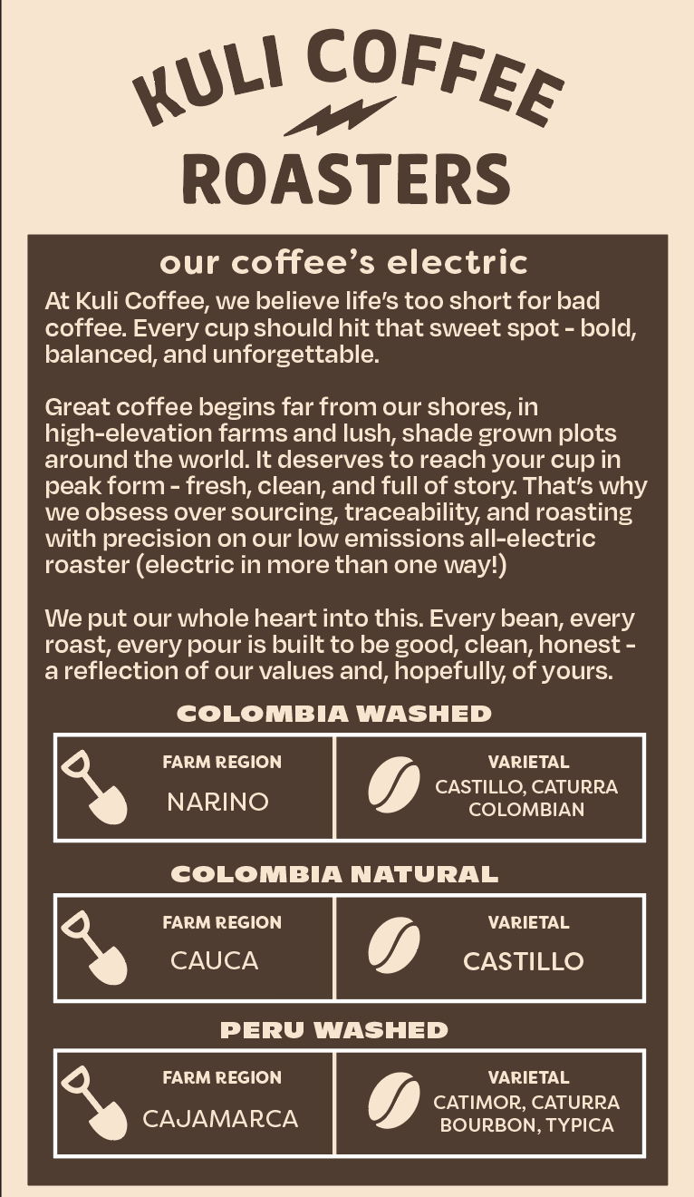 Somewhere just a blink off the I-5 lies one of the coolest towns in SoCal, San Clemente. Yah, it's the place to hang out, surf, walk in the fresh crisp ocean breeze, and of course relax with an amazing coffee in hand with friends and family, or maybe just your dog. We are excited for you to explore your new place of chill - KULI Coffee. Rooted in good vibes and great style, we can't wait to serve you many, many coffees soon!